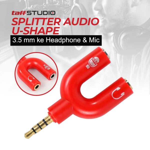 TaffSTUDIO Splitter Audio U Shape 3.5mm ke Headphone dan Mic – K0650